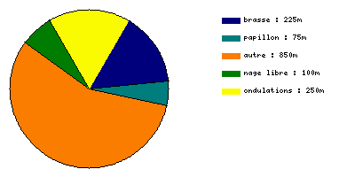 Dès le début en battements me voilà en train de rattraper trop facilement un brasseur qui n'utilisait que ses bras, les jambes inertes (mais qui flottaient à peu près car il les gardait repliées). Et entre autres réjouissances, une brasseuse bien singulière, qui se déportait complétement vers la gauche sur la moitié de la longueur, mais dans un sens seulement, au retour elle serrait à droite ... une sorte de superstition peut-être, pénible pour les autres en tous cas.