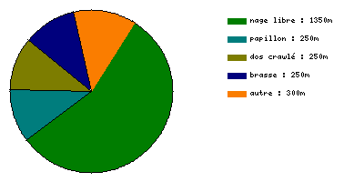 • de 19h45 à 21h30, glycine a nagé 3000 mètres : Le chrono de mon premier kilo était tellement pourri que je me suis demandé si je n'avais pas fait 1,1 km, eh bien non. Pourtant y'avait pas foule, je ne peux pas invoquer avoir été gêné. Vexé, j'ai forcé pour la suite, sans grande efficacité, c'est pas la forme. D'ailleurs qu'est-ce que je baille ! je vais aller au lit nager dans mes rêves et ça va aller plus vite.