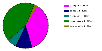 Séance glisse, objectif : nager le moins de coup de bras possible sur 50 mètres. Alors ça donne ça : 15 à 16 coups de bras en brasse sur le 50, 12 à 13 en papillon (donc 4 mètres d'avancement par coup de bras ^^). Et des chronos sur un 200m 4N (bonnes sensations) puis un 100m crawl sur lequel je n'avais plus de bras, et mal au genou sur les battements. Une seule ligne comme les autres samedis, mais entraînement bien géré par le coach car on ne s'est pas gênés en nageant.