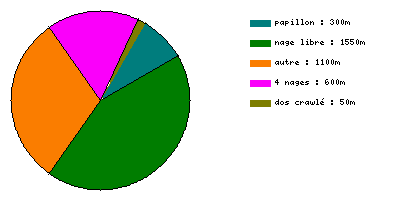 Échauffement : 700m : 300m crawl + 3 x 100m 4 nages + 4 x 25m (25 appui et 25 educ), bah j'ai fait crawl et dos