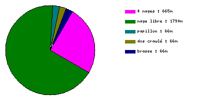 Ensuite après cet exercice vraiment plus fatiguant qu'il n'y paraît, c'est parti pour une série 4 nages : 66 pap / 133 4n, puis on répète avec les 3 autres nages. Particularité : il faut nager le 4n vite jusqu'à la nage du 33 inclus (pour le premier c'est pap vite, le second pap + dos, etc). Bref terminé par un 133 sprint avec douleurs aux abdos difficulté au point d'avoir du mal à inspirer de l'air.