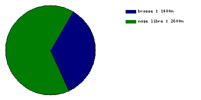 Toutes les conditions étaient réunies et au maximum 3 dans ma ligne. D'abord 1000 m en brasse puis des séries en nage libre dont 1500 m d'affilée en 40 min 15 sec et finir doucement par 250 m en Brasse. Je suis plus en forme quand je cours environ 5 km la veille.