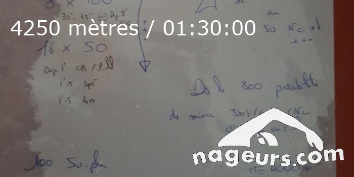 • de 08h00 à 09h40, Tranbert1961 a nagé 4100 mètres : 4°séance, un 4100m matinale bien passé