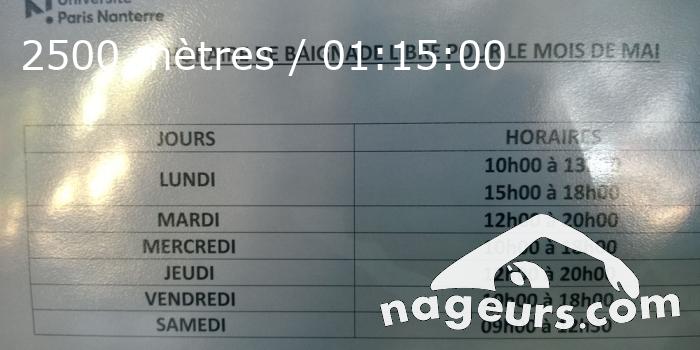 Détail de la séance de baigneuse du lundi 07 mai 2018 de 12h10 à 13h25 , à la piscine de Nanterre Université.