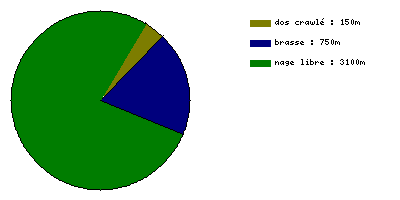 D'abord 500 m en brasse et 100 m en crawl pour se mettre dans le rythme puis 3000 m en crawl sans pause en 1 H 15 min 52 sec (39 secondes de plus que la semaine dernière) pour finir en dos et en brasse. Peu de monde.