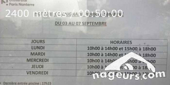 Détail de la séance de snoop77 du mardi 04 septembre 2018 de 12h35 à 13h25 , à la piscine de Nanterre Université.