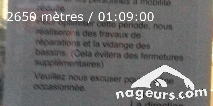 Club : Les 400 premiers mètres et le dernier 100 sans pince-nez. La piscine fermera du 12 novembre au 21 décembre pour vidange et travaux.