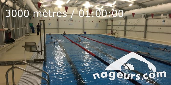 3 nageurs par ligne. Un programme classique bien rythmé à la seconde près, un 3000m qui tient en 60 minutes. Une pyramide avec des temps de départ extrêmement serrés, et des temps très satisfaisants entre 1min15 et 1min17 au 100m, 35s sur les 50, et entre 15 et 18s sur les 25. En plus pas besoin de faire les soustractions ce soir, le coach nous donnait à tous nos temps directement !