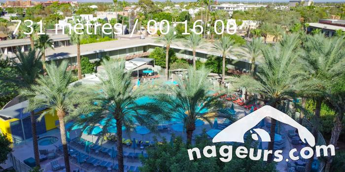 Et dans une annexe plus calme un couloir de 25y assez large (4m), peu utilisé (2 personnes que j'ai fait fuir en nageant) et surtout ombragé. Malgré tout, l'eau est trop chaude. Ici elle aurait besoin d'être refroidie car il fait 115°F à l'ombre !