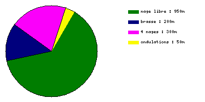• de 17h20 à 18h35, oleum a nagé 2200 mètres : Temp. bassin : bonne, lignés tuyaux d'arrosage, 3 couloirs de nage distincts (4 nages, crawl uniquement, matériels).