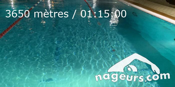 • de 19h15 à 20h30, swim3 a nagé 2600 mètres : Coach Fabien. Bassin nordique. Échauffement = 400m crawl + 6 x 100m 4N (jambes educs complet x 2). Série 10 x 50m bonne coulée max onduls.