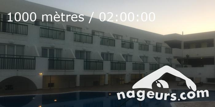 2 seances matin et soir, sous les yeux admiratifs d un vieux monsieur qui faisait bronzette avec sa femme. Il m a felicite pour la nage