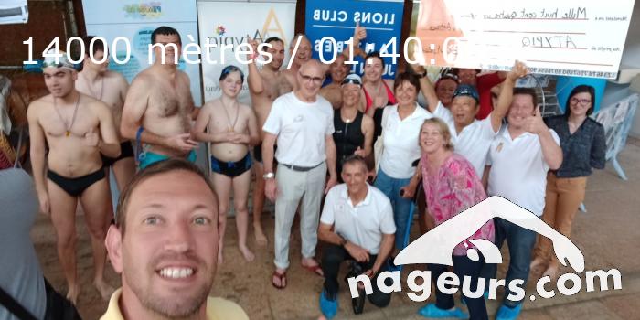 • de 10h20 à 12h00, samsam a nagé 14000 mètres : séance réalisée à 7 nageurs pour PLOUF 2022 , évènement organisé par le lions club dAntibes et parrainé par Alain Bernard....