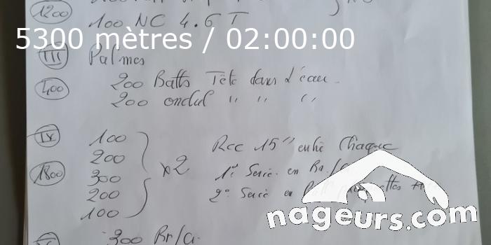 • de 16h20 à 18h20, Tranbert1961 a nagé 5300 mètres : 12° séance de stage le soir 🤗😤