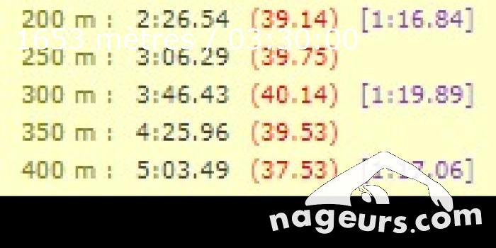 • de 14h00 à 17h00, CedricS a nagé 1500 mètres : Compétition interclubs TC à Keller. Relais et 200 4N en 2’53’’33 + échauffements et récupération.