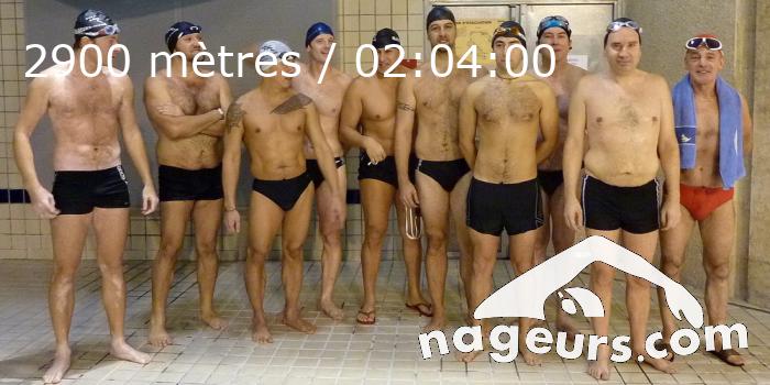 Je voulais terminer sur un nombre rond, 3000m, j'avais le temps avant l'évacuation du bassin à 19h45, mais vu le monde dans les couloirs, et au cours de palmeuses / rétro-pédaleuses, j'ai préféré ne pas attendre le coup de sifflet final pour éviter de ne pas trouver de place sous les douches, puis dans les cabines de vestiaires. Des spécimens de début janvier, dont un hippocampe qui faisait des moulinets sous-marins avec les bras dans le couloir d'à côté, et les "gras du bide" qui espère retrouver une taille de guêpe en quelques séances avec l'achat d'une carte 10 entrées qu'ils ne termineront pas dans l'année. Et pourtant c'est possible, avec de la persévérance et une alimentation plus équilibrée. En témoigne cette extraordinaire photo (il fallait la retrouver dans les archives !) de 2011 où j'avais encore du pain sur la planche.