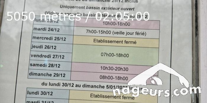 Détail de la séance de bigorno du mercredi 11 décembre 2024 de 13h15 à 15h20 , à la piscine Butte aux Cailles.